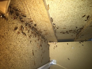 These cockroaches prefer 80 degrees or warmer, thus, more often found in upper cabinets in kitchens or bathrooms, or on the ceilings in dimly lit rooms.