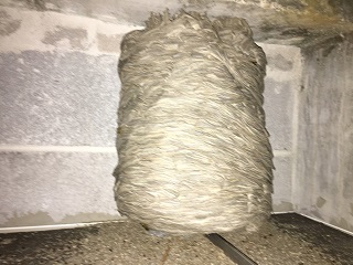 The nest of a European Hornet can be underground, inside large cracks in trees, attached to the framework of houses and structures, or buried in long grass (like the above photo).