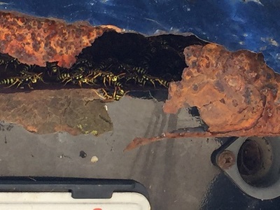 Spring through summer, yellow jackets (a wasp) bring insects, meat and fish to feed larvae in their rapidly growing colony.